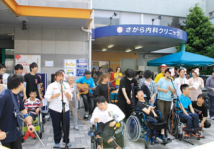 職員と利用者さん一緒になって、ハンバーガーを作ったり焼きそばを作ったり、販売したり。