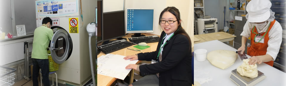 | 館内 | 厨房・清掃・印刷・事務・営業・洗濯・工房・製造(パン・菓子)・接客販売・軽作業 |